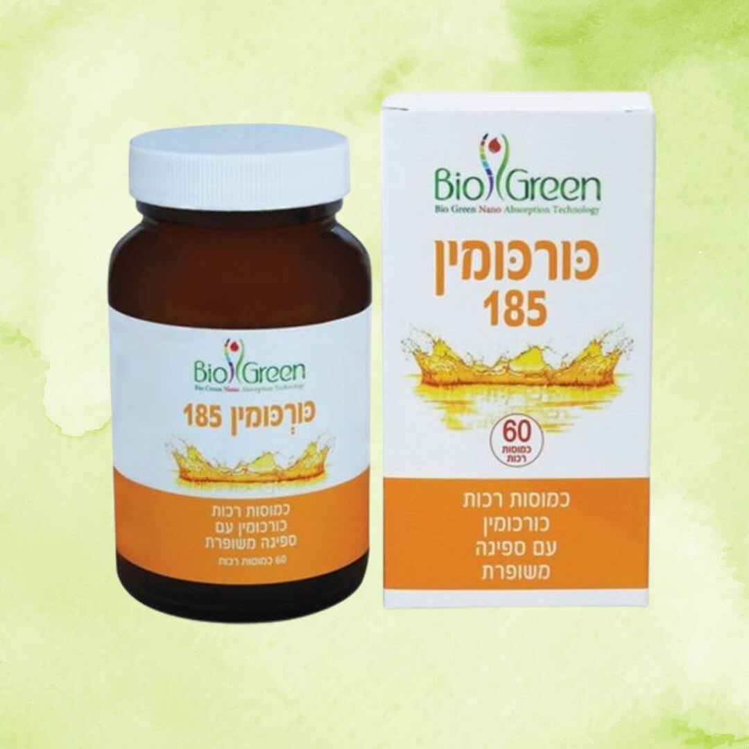 כורכומין 185 של חברת ביוגרין הנו כורכומין בעל זמינות ביולוגית גבוהה יותר במערכת העיכול , כורכומין פטנטי של חברת ®NOVASOL . הכורכומין עטוף במעטפת ייחודית בצורת מיצלה המהווה עמידות גבוהה בחומציות הקיבה ופירוק במעי.