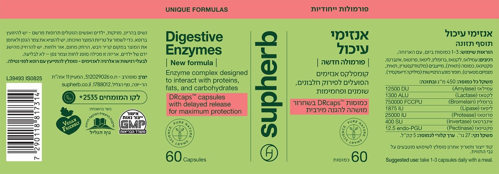 המוצר מכיל את שבעת האנזימים החיוניים לפירוק וספיגה של המזון בגוף.