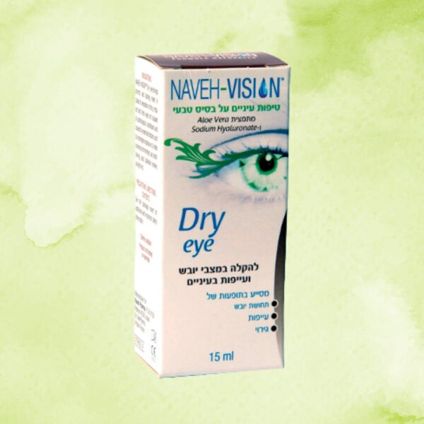 Dry Eye Naveh Vision הוא תכשיר עיניים טבעי המבוסס על חומצה היאלורונית ותמצית אלו-ורה, המיועד להקלה על יובש, עייפות ואי נוחות בעיניים. החומצה ההיאלורונית פועלת כלובריקנט טבעי, יוצרת שכבת לחות המגנה על העין, בעוד שתמצית האלו-ורה מסייעת בהרגעת גירויים ונוגדת דלקת. המוצר מתאים לשימוש יומיומי לכל הגילאים, כולל תינוקות, ילדים, מבוגרים, נשים בהריון ומניקות.