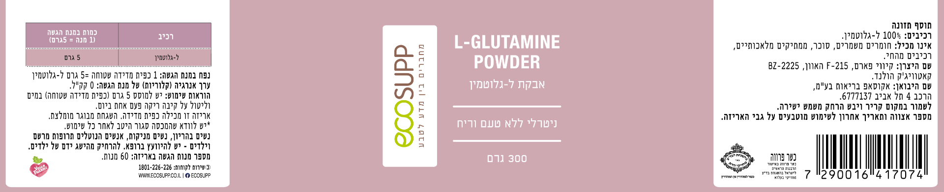 אקוסאפ L‑גלוטמין אבקה | EcoSupp L‑Glutamine Powder