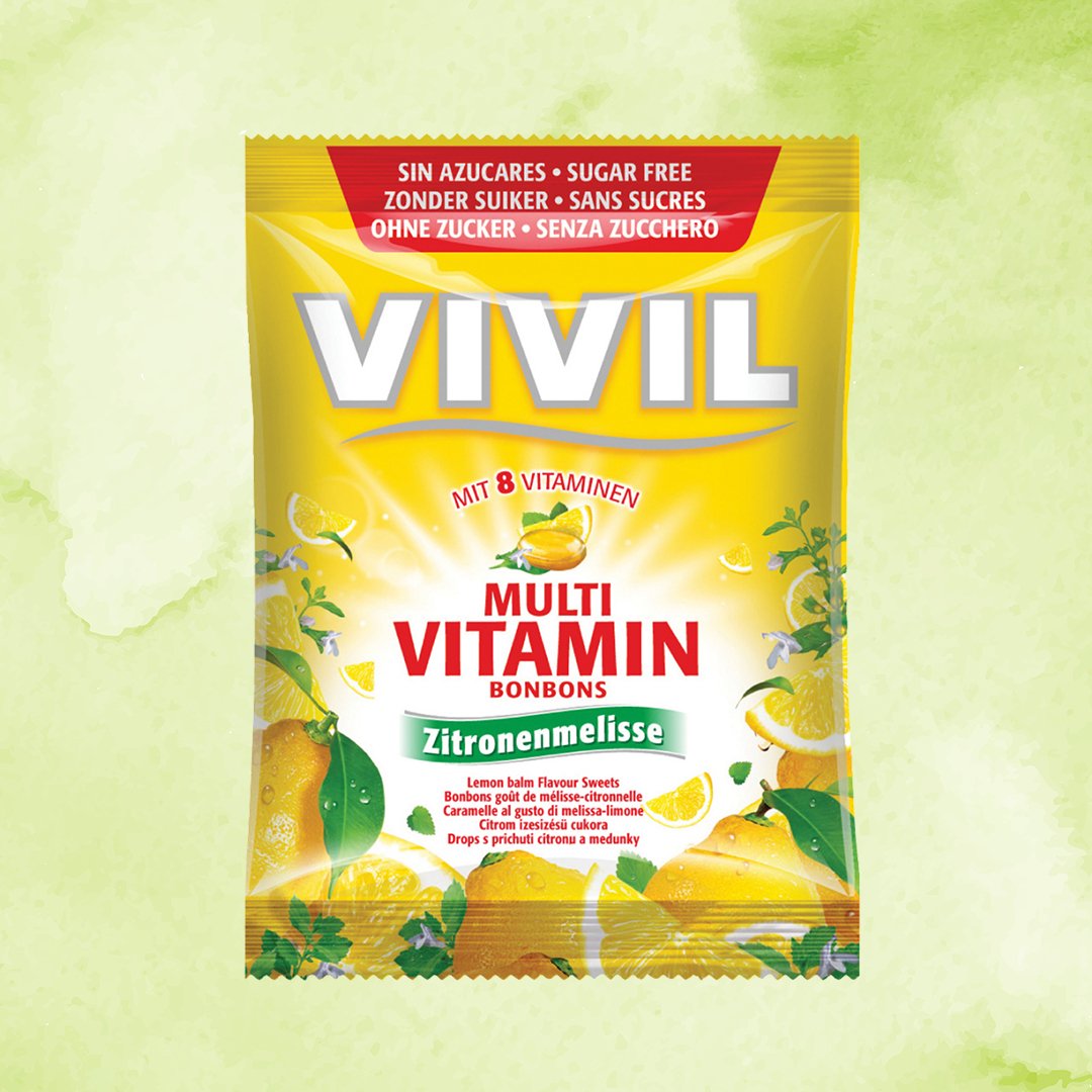 ממתיק: איזומאלט E953, ממתיק:סירופ מלטיטול E965, מווסת חומציות: חומצה ציטרית, תמצית צמחים 0.5% (אכילאה אלף העלה (Achillea millefolium), בכור האביב (Primula veris), חלמית גדולה (Malva sylvestris), סמבוק שחור (Sambucus nigra), ארכובית (Bistorta officinalis), נטופית רפואית (Althaea officinalis), חזזית איסלנדית (Cetraria islandica), מרווה (salvia oifficinalis), כוכב אניס (Illicium verum), בוצין (Verbascum densiflorum), דרדר כחול (Centaurea cyanus), ציפורן החתול (Calendula officinalis), היביסקוס (Hibiscus sabdariffa), בת קורנית (Thymus vulgaris), קורנית ספרדית (Thymus zygis), נענע חריפה (Mentha x piperita), פרג (Papaver rhoeas), ליקוריץ (Glycyrrhiza), כמנון (Pimpinella saxifraga), לחך רחב עלים (Plantago lanceolata), בבונג (Matricaria recutita), שומר (Foeniculum vulgare), פטל (Rubus fructicosus), פרחי לינדן (tilia cordata, platophyllus), עולש (Cichorium intybus), שן הארי (Taraxacum officinale)), מנטול, רכז מיץ לימון %(0.2), חומצה אסקורבית (ויטמין C), ניאצינאמיד, ד-ל טוקופרול, סידן-די-פנטוטנאט, פרידוקסין הידרוכלוריד (ויטמין (B6, ריבופלאוין (ויטמין B2), ביוטין, ציאנוקובלמין, חומרי טעם וריח לימון, חומרי טעם וריח, ממתיקים: (אססולפאם קיי E950, סוכרלוז (E955, צבע מאכל כורכומין, חומר טעם וריח שמן לימון