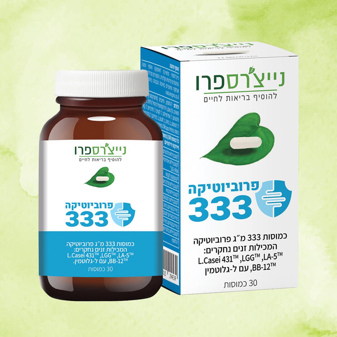 פרוביוטיקה 333 של נייצ’רס פרו היא תוסף תזונה המכיל 333 מ”ג של פרוביוטיקה עם זנים נחקרים, בתוספת ל-גלוטמין, המיועדת לתמיכה במערכת העיכול ובאיזון החיידקים הידידותיים בגוף.