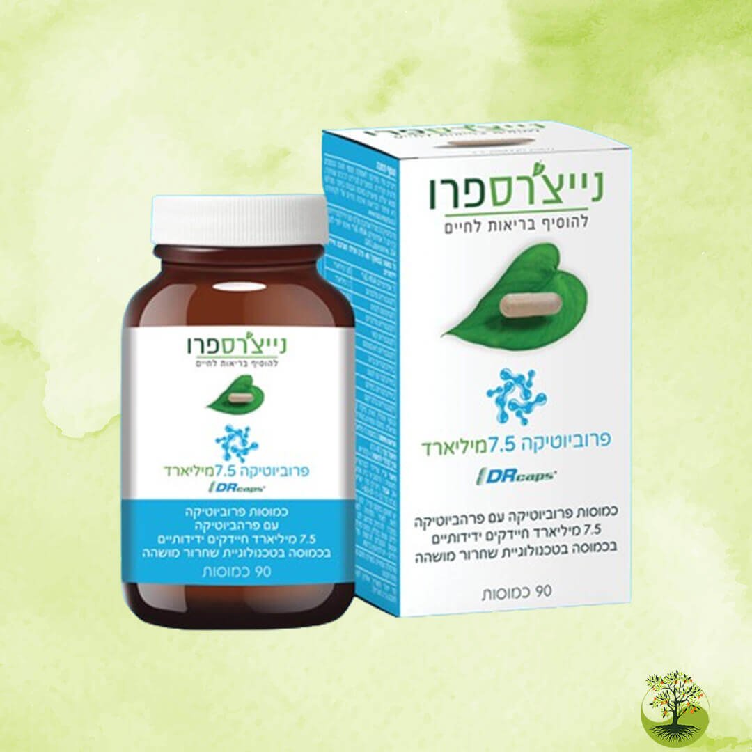 פריביוטיקה 7.5 מיליארד של נייצ’רס פרו מיוצרת בטכנולוגיית שחרור מושהה ומכילה 10 זנים.