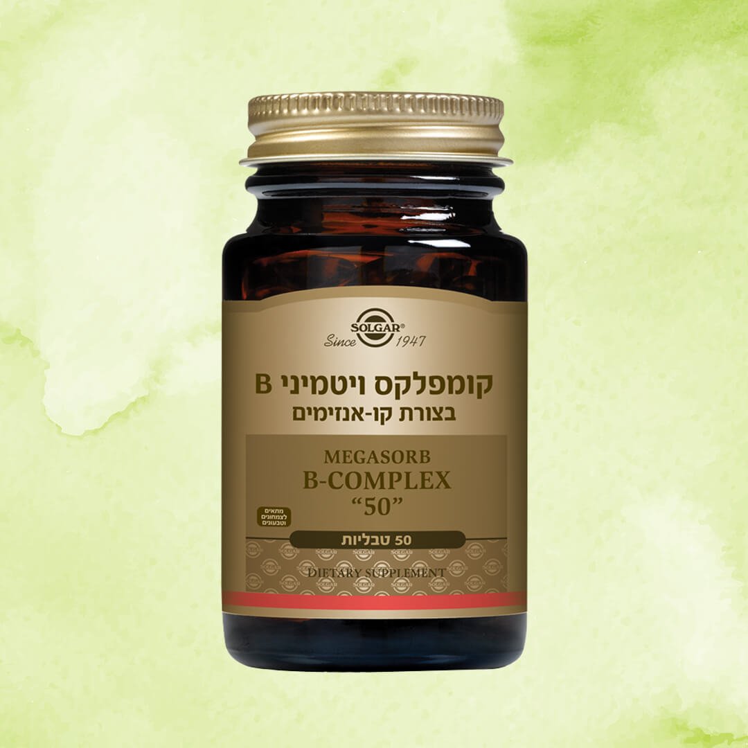 קומפלקס ויטמיני B “מגה-סורב” מבית סולגאר הוא תוסף תזונה איכותי המכיל את כל ויטמיני B בצורתם הפעילה – קו-אנזימים, המבטיחה ספיגה וזמינות ביולוגית משופרת. הפורמולה כוללת מינון מאוזן של ויטמיני B, כולל חומצה פולית במינון של 400 מק”ג, ומגיעה במנגנון שחרור מושהה (Sustained Release) לתמיכה בתפקוד מערכת העצבים, ייצור אנרגיה, וחילוף חומרים תקין של פחמימות, חלבונים ושומנים.