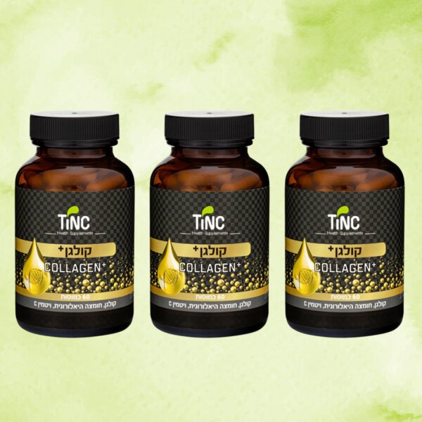 קולגן+ מבית TINC הוא קומפלקס ייחודי ואיכותי לשימוש יומיומי, המשלב בין פפטידי קולגן ימית מסוג ®Naticol, חומצה היאלורונית וויטמין C – שלושת המרכיבים החיוניים לשמירה על מראה עור בריא, גמיש ומלא לחות.