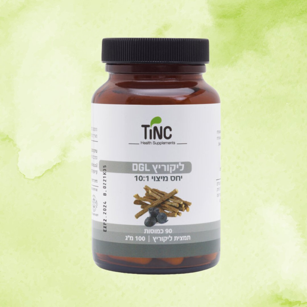 שורש ליקוריץ DGL | TINC DGL Licorice Root – DeGlycyrrhizinated Glycyrrhiza Glabra – 90 Capsules