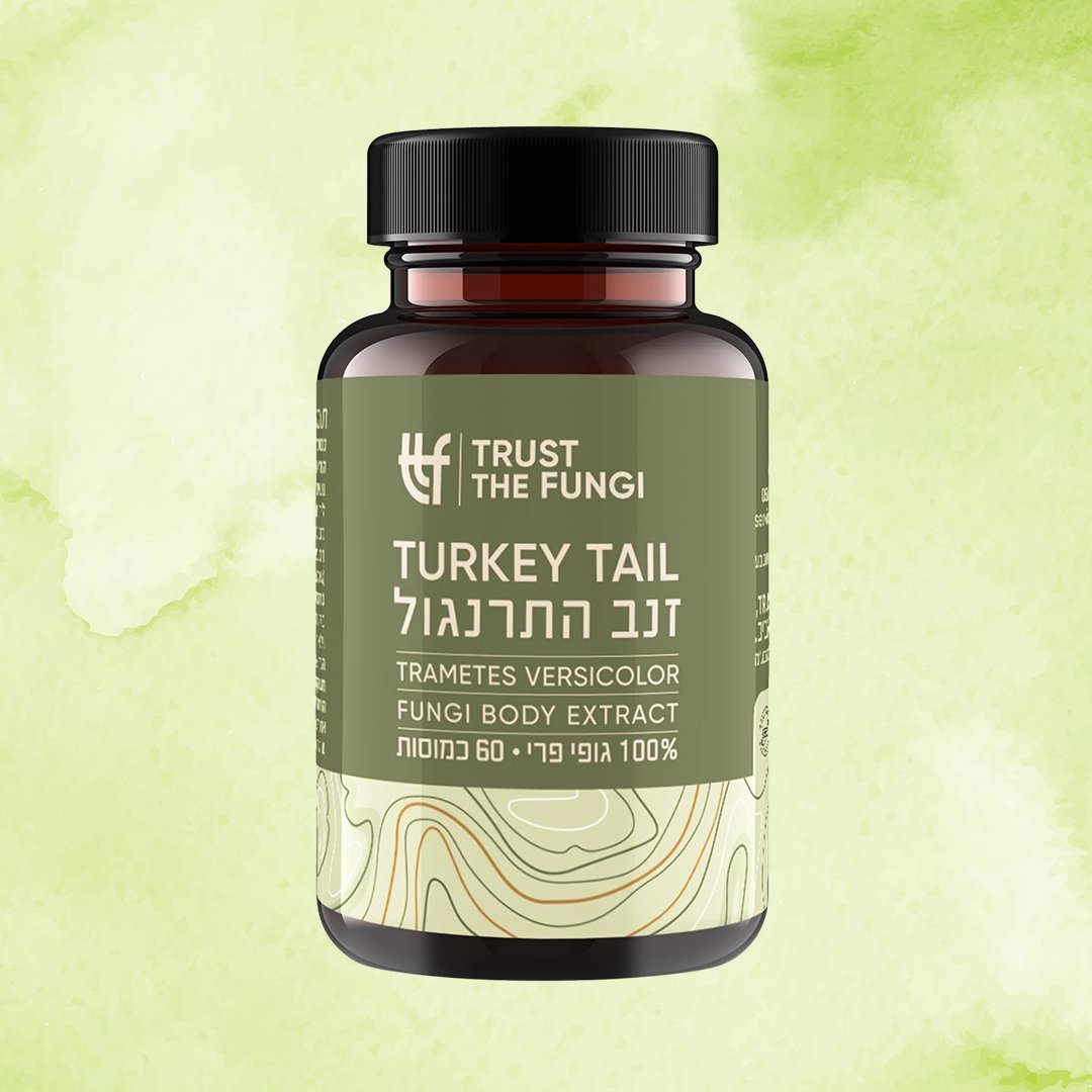 Turkey Tail היא פטרייה ממשפחת polypore, המשמשת במרפא מסורתי באסיה לכבד ולמערכת החיסון. התמצית מבוססת על פוליזכרידים פעילים כמו β‑glucans (PSK, PSP) הידועים כמודולטורים רב־עוצמה של המערכת החיסונית ותקשורת בין־תאית טבעית