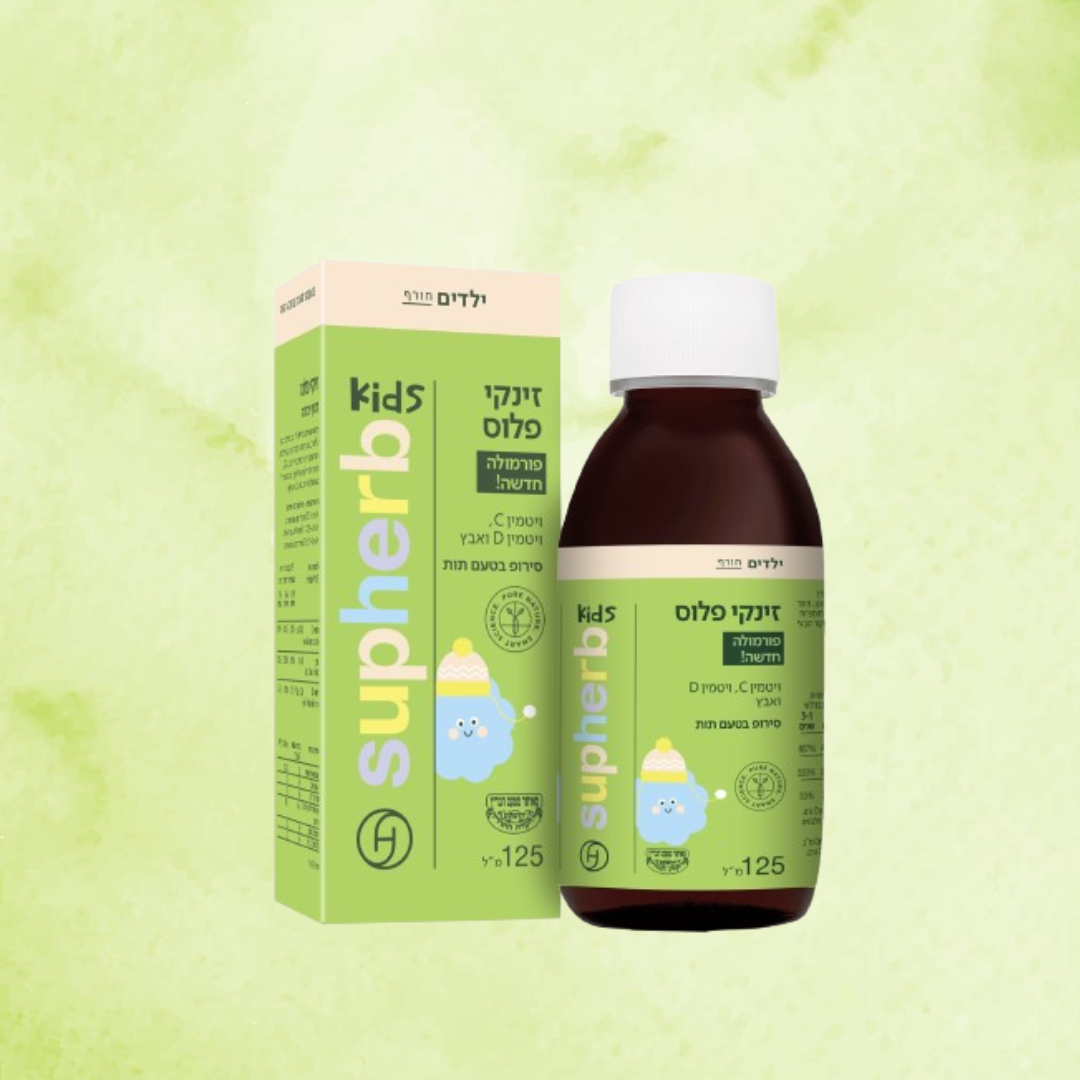 זינקי פלוס לילדים – סירופ בטעם תות עם ויטמין C, ויטמין D ואבץ, לחיזוק מערכת החיסון בחורף. מתאים לילדים מגיל 4, ללא סוכר, קל לשימוש וטעים במיוחד.